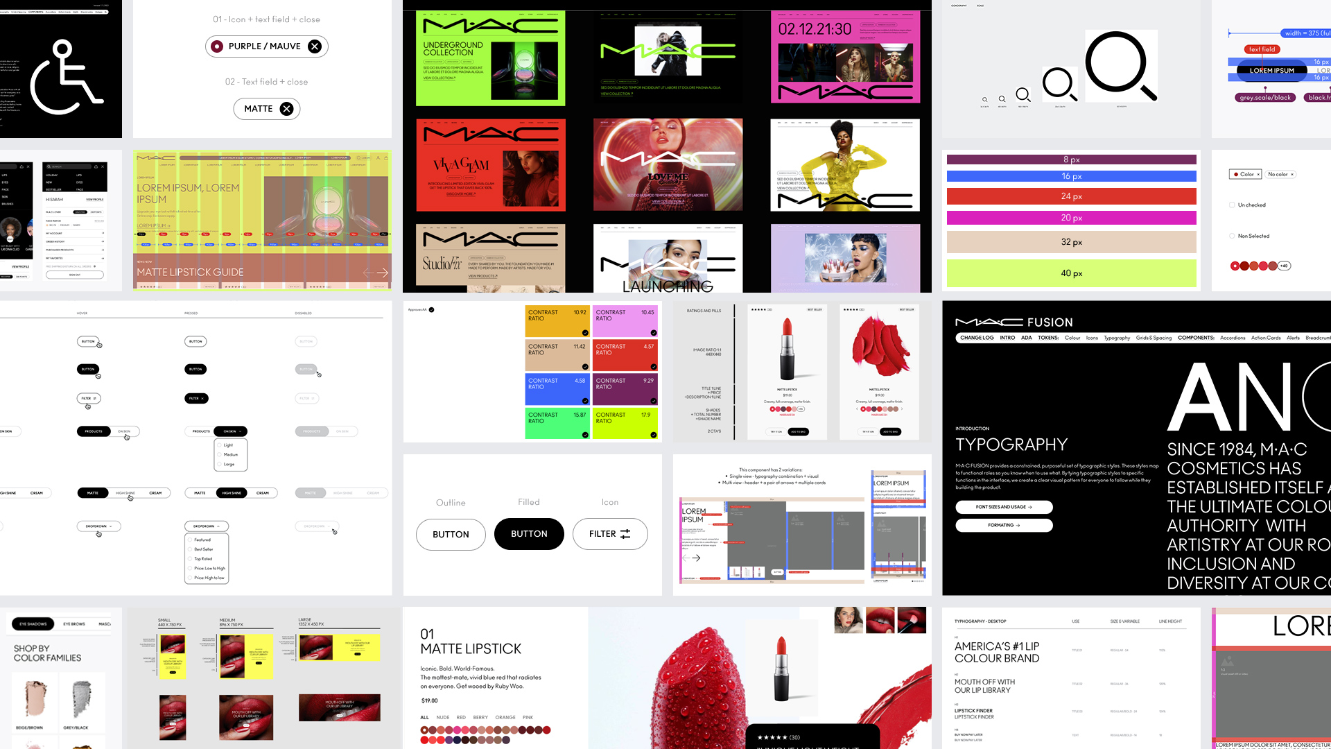 I led the design and experience teams building the brand.com, retail.com and interactive design system (M·A·C Fusion) to transform and modernize the customer experience. The mission I drove was to build a premium experience for limitless self-expression based on our core values; Trend, Artistry, Individuality, and Community.